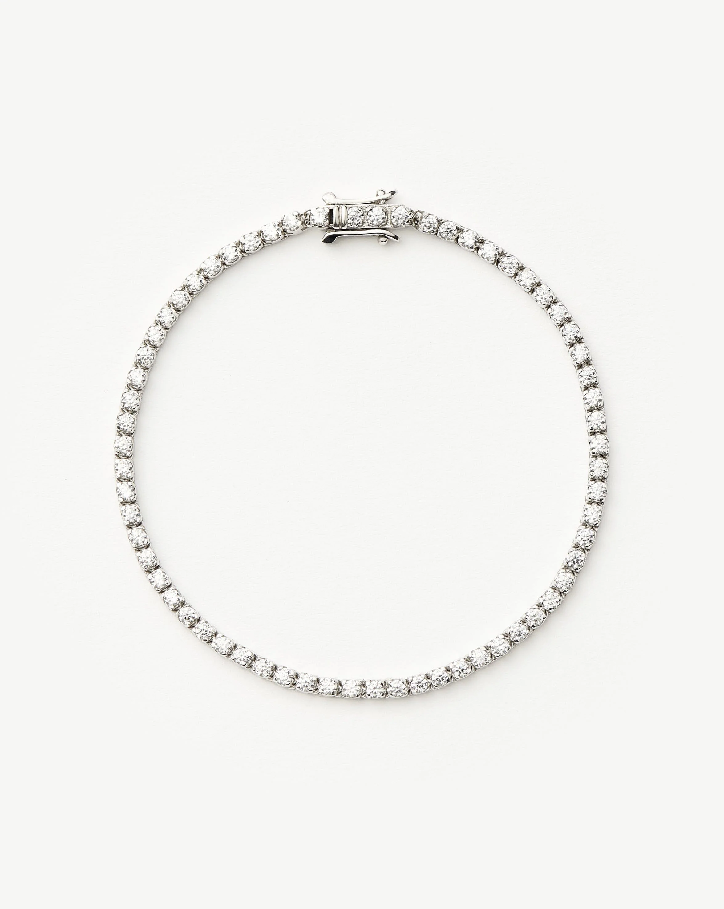 The ultimate luxe layer, this everyday silver bracelet is embellished with cubic zirconia. Let it shine solo or stack with delicate chains. Each individual piece in our Tennis Collection takes 24 hours to craft by hand.