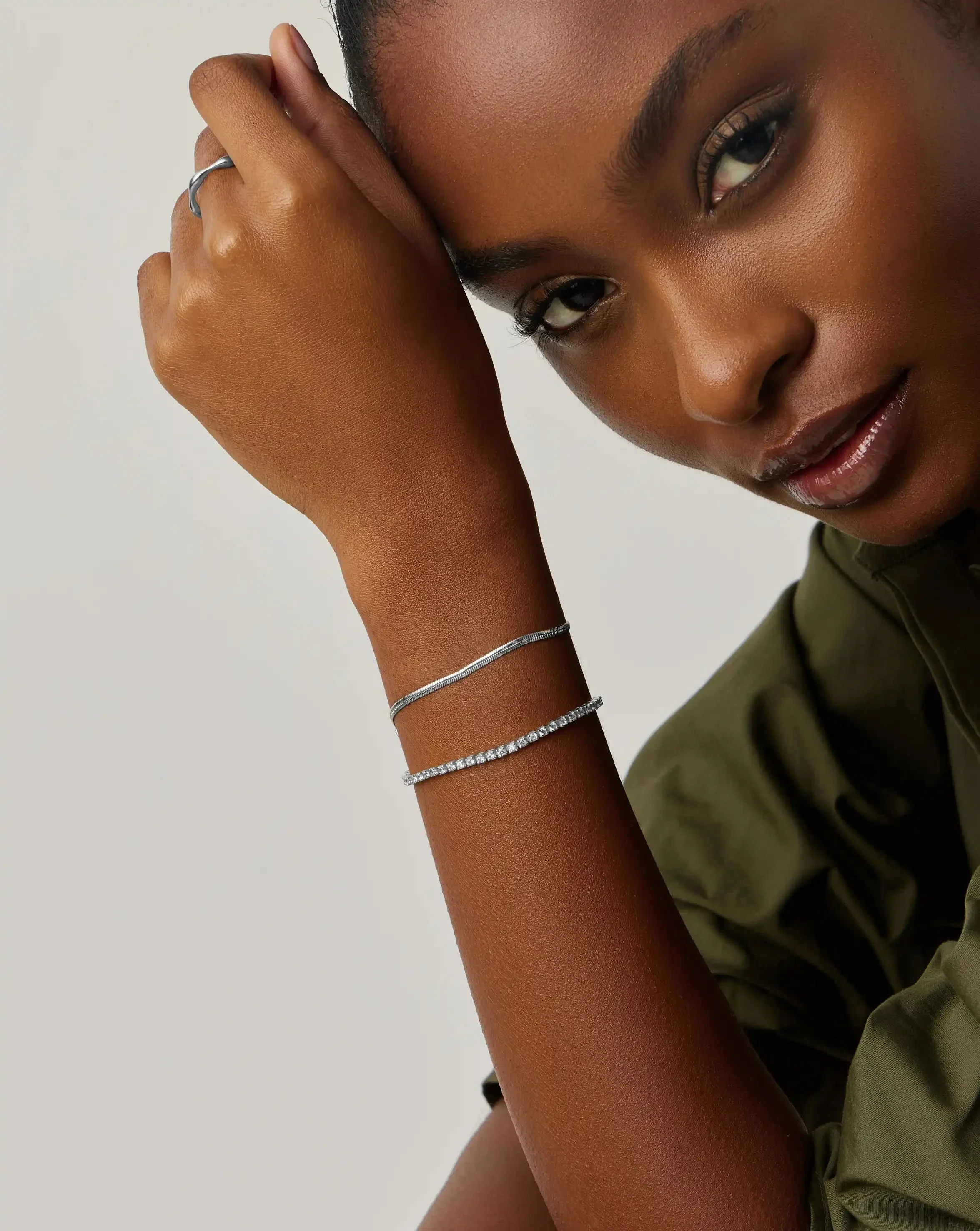 Upgrade your arm stack with a standout set. Teamed together, the Classic Tennis Bracelet and Thin Snake Chain Bracelet make a unique impact.